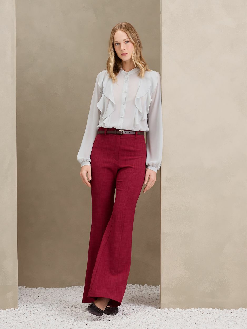 BLUSA MANGA BUFANTE COM BABADINHOS CINZA